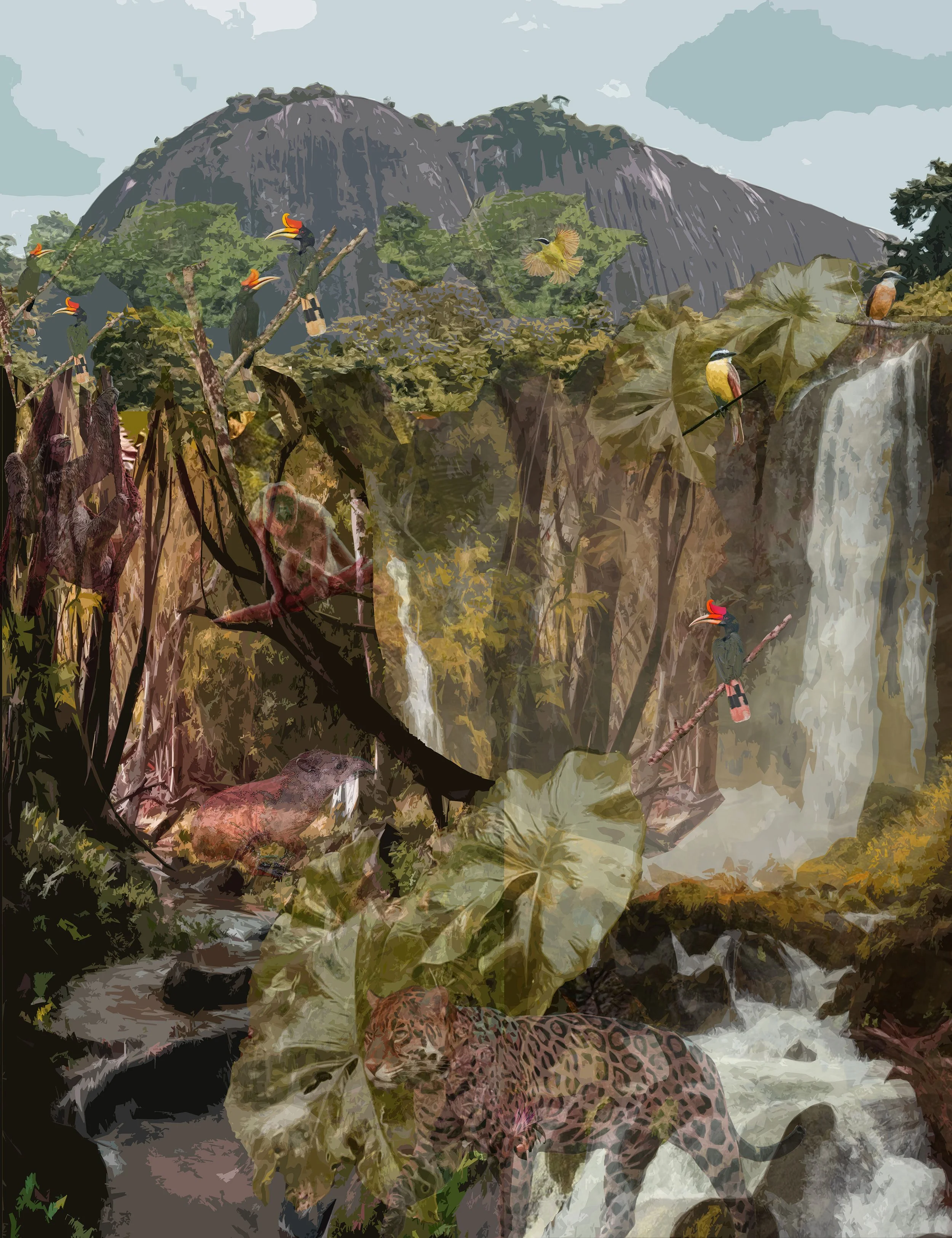 This painting was inspired by Suriname’s 2025 pledge to permanently protect 90% of its forests. Ahead of COP30 in Belém, Brazil, the government of Suriname made an historic and ambitious pledge to protect 90% of its forest cover in perpetuity, amounting to 15 million hectares of tropical rainforest.